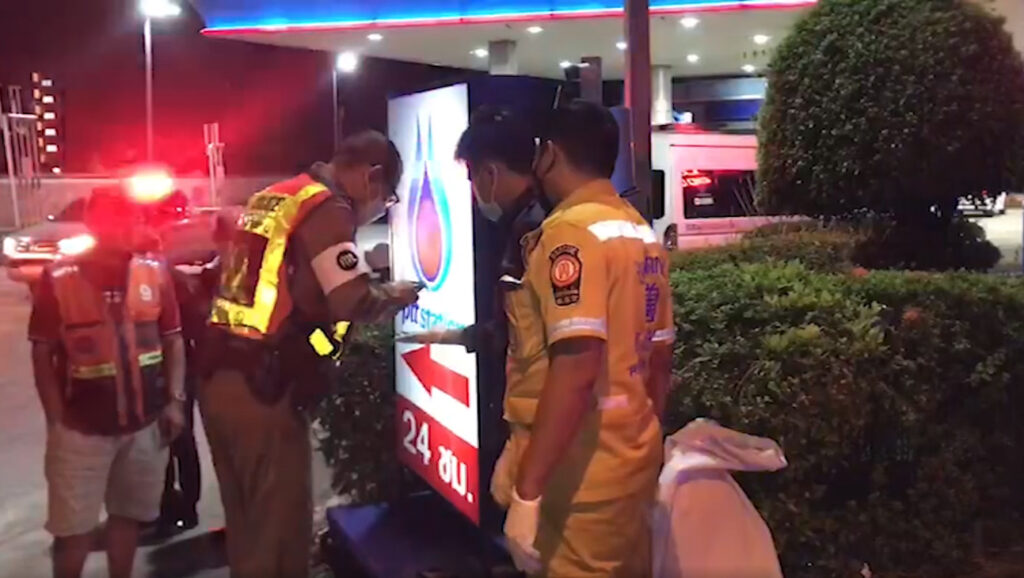 ไรเดอร์ ซึ่งจอดเติมน้ำมันอยู่ภายในปั๊มน้ำมัน ให้การว่าขณะเกิดเหตุเติมน้ำมันอยู่ในปั๊ม ได้ยินเสียงดังตูม จึงออกมาดู พบทั้ง 2 คน นอนไม่ได้สติ ก่อนที่ผู้ได้รับบาดเจ็บ จะฟื้นขึ้นมา ส่วนสาเหตุตำรวจจะตรวจสอบจากกล้องวงจรปิดบริเวณใกล้เคียงอีกครั้ง .-สำนักข่าวไทย