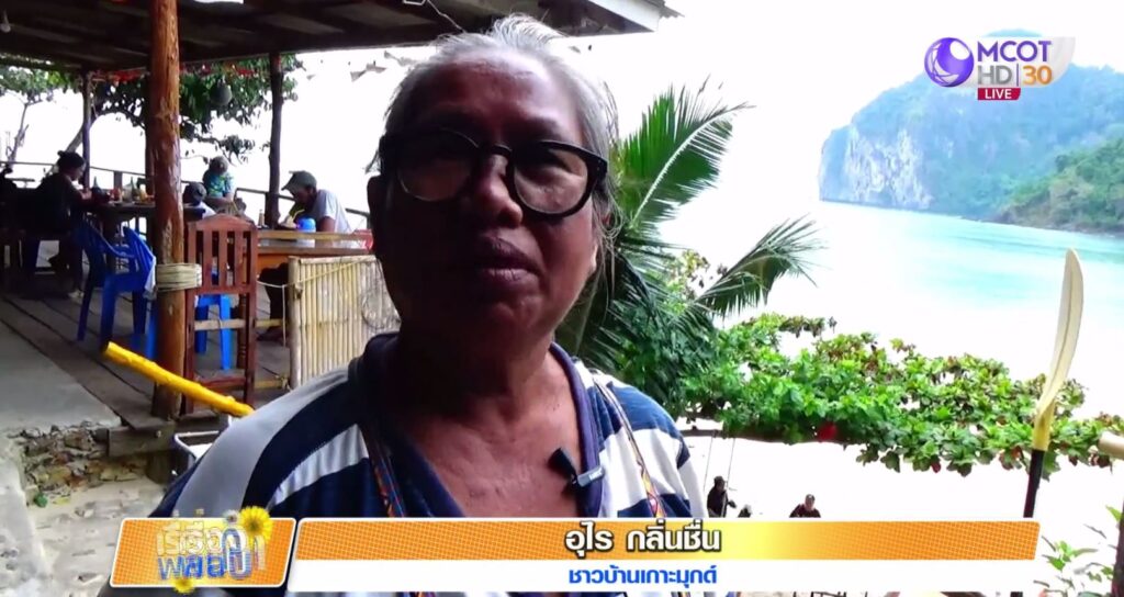 แม่ค้าขายอาหารบนเกาะมุก เล่าว่า ชาวบ้านเห็นแบบนี้มานานแล้ว แปลกที่ธรรมชาติสร้างไว้ เหมือนพระพุทธรูป ข้างในเป็นถ้ำมรกต แต่เดินไปไม่ได้ ต้องพายเรือไป เป็นอันซีนไทยแลนด์ แม้จะเคยผ่านสึนามิมาภูเขานี้ก็ไม่สึกกร่อน.-สำนักข่าวไทย