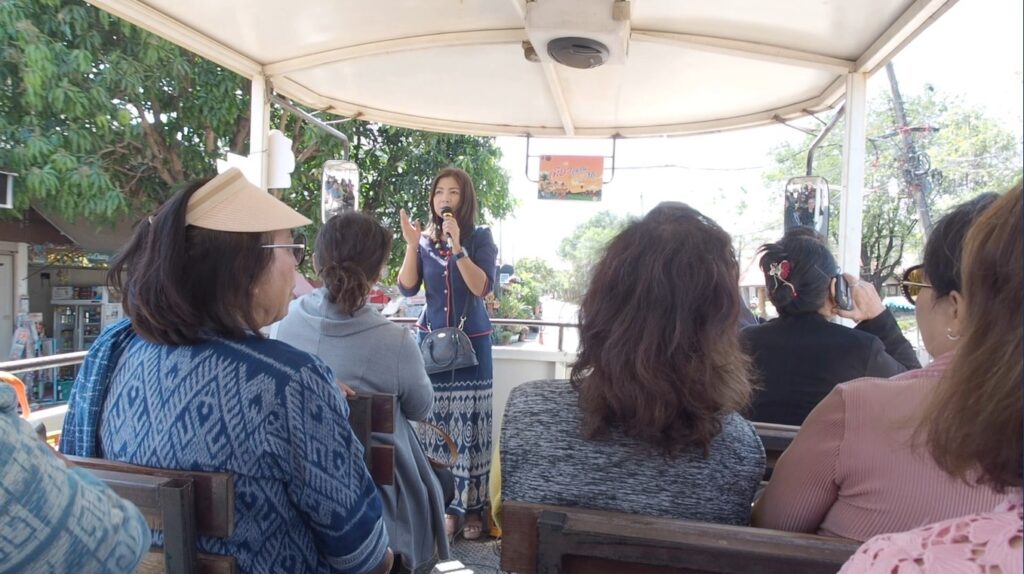 จากนั้นไปซื้อของฝากจากชุมชน ซึ่งสินค้าที่ได้รับความนิยมคือ ชุดไทยของสุภาพสตรีลายประวัติศาสตร์บ้านเชียง ที่ดูทันสมัย และปิดท้ายด้วยการไปทำบุญที่วัดสันติวนาราม ที่มีเจดีย์ดอกบัวกลางน้ำ
