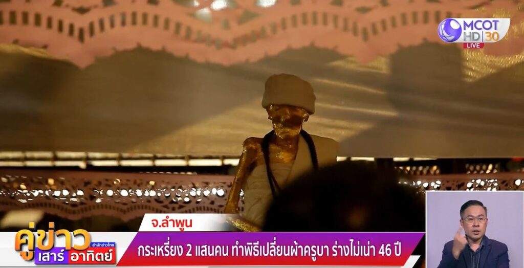 ลำพูน 4 มี.ค. – ประชาชนนับแสนคนหลั่งไหลมาจากทั่วสารทิศ ร่วมพิธีเปลี่ยนผ้าครองสรีระ “ครูบาเจ้าอภิชัยขาวปี” ซึ่งปีนี้ครบรอบ 46 ปี ที่มรณภาพ ที่วัดพระพุทธบาทผาหนาม ต.ป่าไผ่ อ.ลี้ จ.ลำพูน