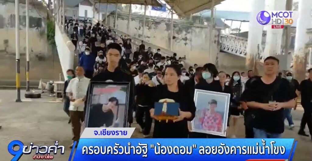 เชียงราย 6 มี.ค. – ครอบครัวและญาตินำอัฐิ “น้องดอม” ลอยอังคารแม่น้ำโขง มีเพื่อนๆ 12 หมูป่า ที่เคยติดถ้ำหลวง ร่วมส่งน้องดอมเป็นครั้งสุดท้าย