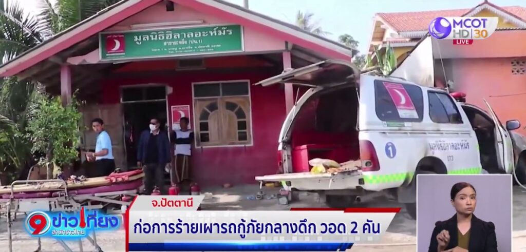 เมื่อเวลา 03.00 น.เมื่อคืนทีผ่านมา ตำรวจ สภ.ยะหริ่ง จ.ปัตตานี ได้รับแจ้งมีคนร้ายลอบวางเพลิงรถกู้ภัยมูลนิธิฮิลาลอะห์หมัร สาขายะหริ่ง จ.ปัตตานี เจ้าหน้าที่นำกำลังเข้าไปตรวจสอบที่เกิดเหตุ พร้อมประสานชุดดับเพลิงเข้าทำการดับไฟ พบรถยนต์ 2 คัน ไฟกำลังลุกไหม้ มีเจ้าหน้าที่มูลนิธิเร่งช่วยกันดับไฟ ใช้เวลาไม่นานจึงควบคุมเพลิงไว้ได้