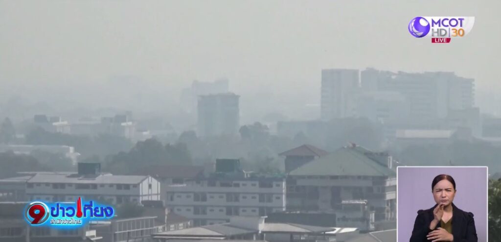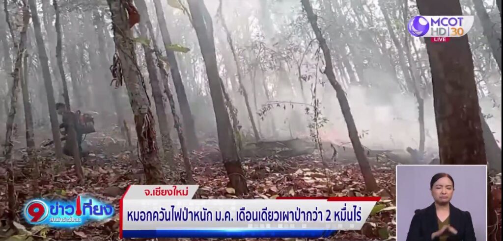 8 มี.ค. – ค่าฝุ่นละอองขนาดเล็ก หรือ PM 2.5 ยังคงสูงในหลายจังหวัด เช่น ตัวเมืองเชียงใหม่ ถูกหมอกควันไฟป่าปกคลุม แพทย์เตือนต้องสวมหน้ากากอนามัย N95 ตลอดเวลา และไฟยังไหม้ป่าเผาพื้นที่เสียหายไปแล้วกว่า 20,000 ไร่