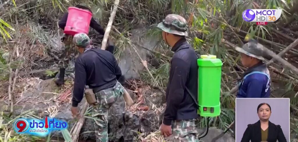 ขณะที่การดับไฟป่าเทือกเขาบรรทัด เป็นไปด้วยความลำบาก จากอุปสรรคพื้นที่เป็นเทือกเขาสลับ ความสูงชัน ไม่เท่ากัน การนำเครื่องขึ้นบินโปรยน้ำดับไฟกลุ่มควันแทบมองไม่เห็น