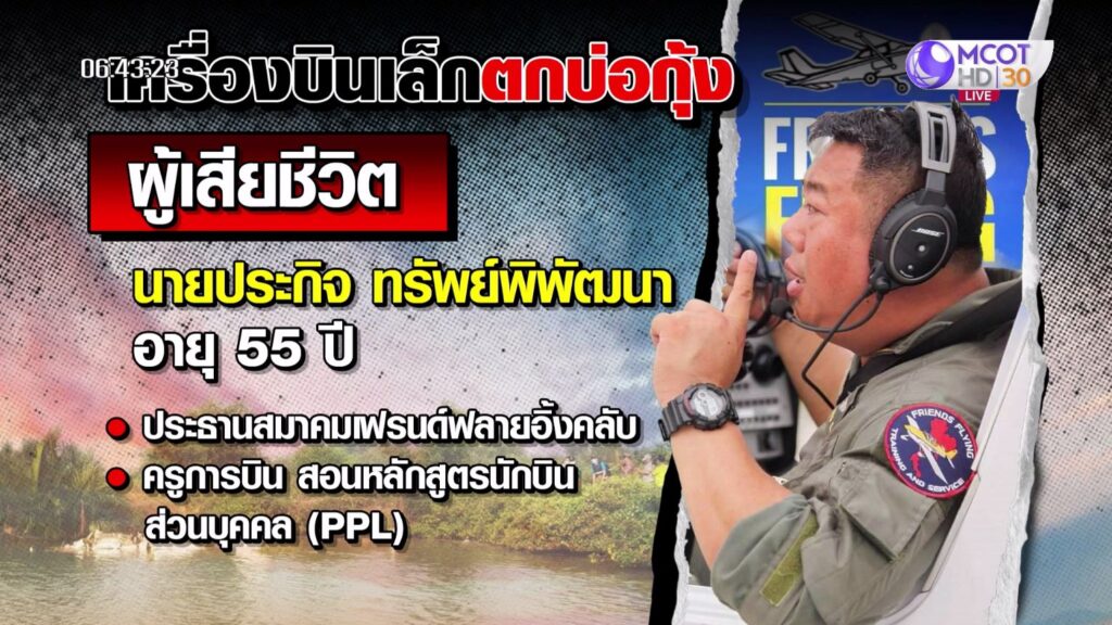สำหรับ นายประกิจ ผู้เสียชีวิต นอกจากจะเป็นประธานสมาคมเฟรนด์ฟลายอิ้งคลับ ยังเป็นครูการบิน สอนหลักสูตรนักบินส่วนบุคคล ที่สมาคมด้วย นอกจากนี้ ในเหตุการณ์เรือหลวงสุโขทัยอับปางกลางทะเลอ่าวไทย พื้นที่ประจวบคีรีขันธ์ เมื่อวันที่ 18 ธันวาคม นายประกิจได้เป็น 1 ในนักบินที่นำเครื่องบินส่วนตัว เข้าช่วยค้นหากำลังพลที่สูญหาย