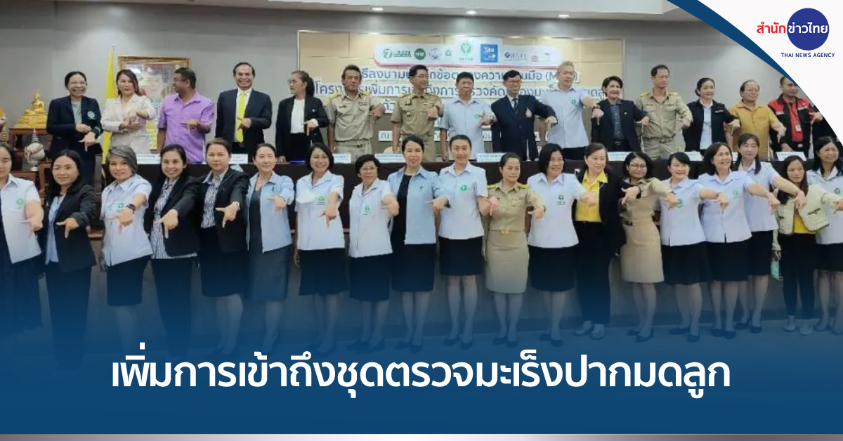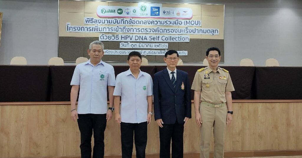 ขอนแก่น 13 มี.ค. – อธิบดีกรมอนามัยเป็นประธานพิธีลงนาม MOU นำร่อง 4 จังหวัดภาคอีสาน เพิ่มการเข้าถึงชุดตรวจคัดกรองมะเร็งปากมดลูก หวังหยุดการเสียชีวิตของหญิงไทยปีละ 5,000 คน