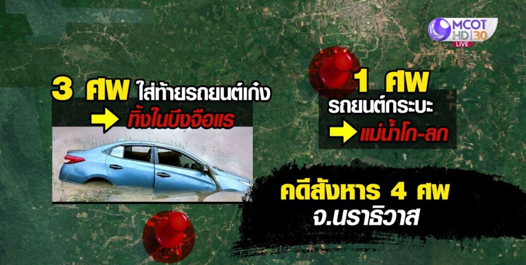 นราธิวาส 13 มี.ค. – ตำรวจรวบตัวน้องชาย “เมธี ลาบานูน” กับพวกรวม 5 คน เอี่ยวคดีฆ่าโหด 4 ศพ ยัดใส่เก๋งอำพรางคดีทิ้งบึงและแม่น้ำโก-ลก ปมเหตุขัดแย้งเรื่องส่วนตัว