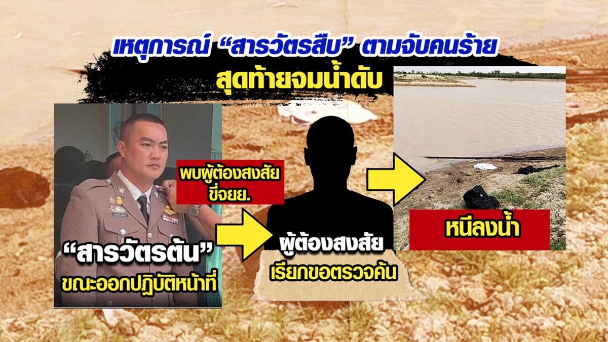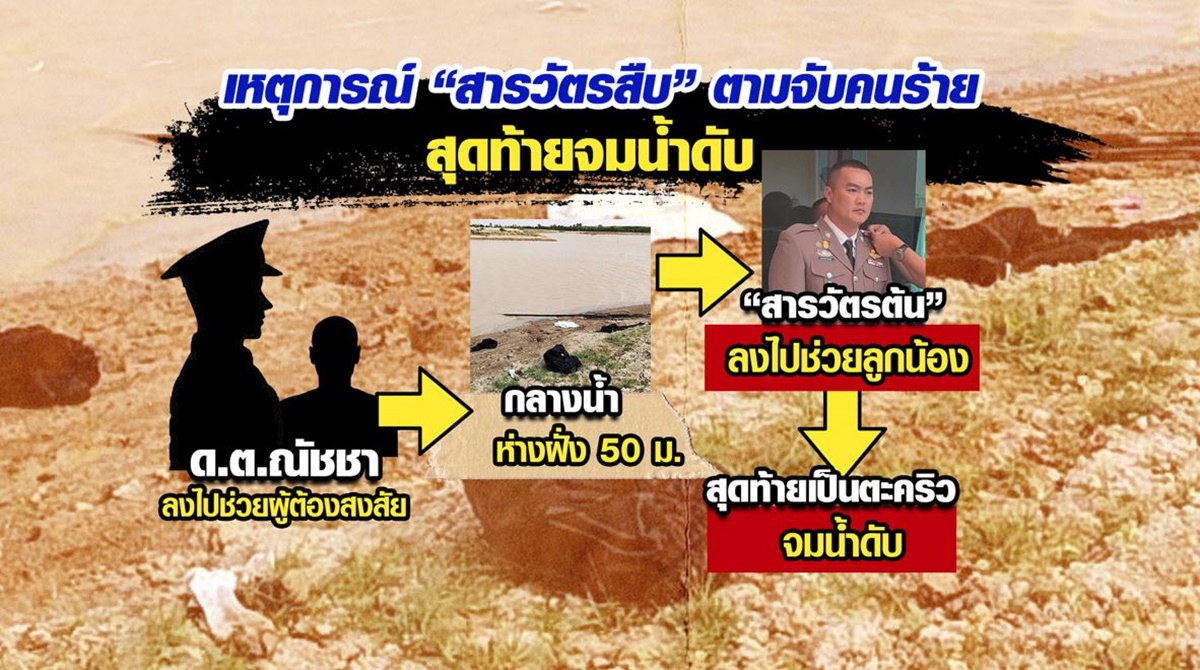 ยโสธร 14 มี.ค. – สลด! “สารวัตรสืบฯ” กระโดดน้ำช่วยลูกน้องตามจับผู้ต้องหายาเสพติด สุดท้ายจมหายต่อหน้าลูกน้อง ล่าสุดนักประดาน้ำพบร่างแล้ว