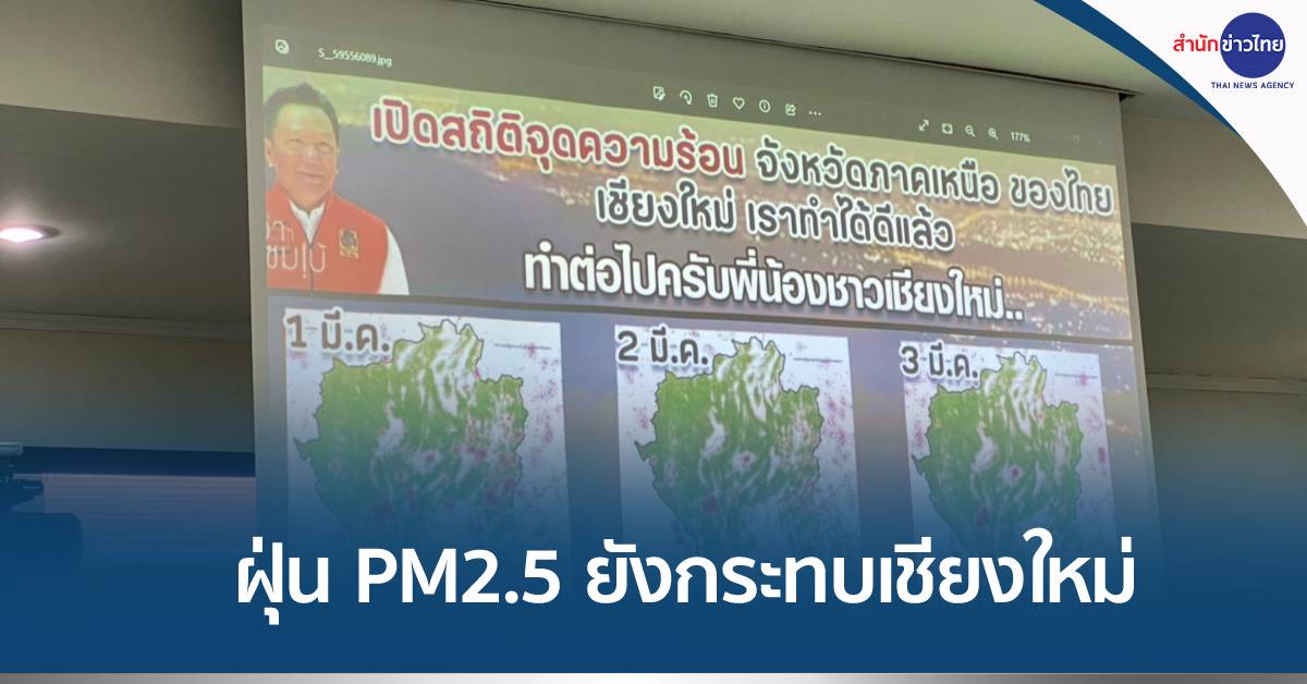 แม้ที่ จ.เชียงใหม่ จะมีฝนตกลงมาและวันนี้จากการจัดอันดับเมืองมลพิษทั่วโลกจากเว็บไซต์ไอคิวแอร์ เมื่อเวลา 14.00 น.ที่ผ่านมา เชียงใหม่ จะตกไปอยู่อันดับที่ 12 ของโลกแล้วก็ตาม แต่กรมควบคุมมลพิษรายงานคุณภาพอากาศค่าฝุ่นพิษ PM2.5 เฉลี่ย 24 ชั่วโมง ที่เชียงใหม่วันนี้ยังอยู่ในระดับที่มีผลกระทบต่อสุขภาพ และเกินมาตรฐานที่บริเวณ ต.ช้างเผือก อ.เมือง จ.เชียงใหม่ อยู่ที่ 55 ไมโครกรัมต่อลูกบาศก์เมตร เช่นเดียวกับศูนย์ข้อมูลการเปลี่ยนแปลงสภาพภูมิอากาศ มหาวิทยาลัยเชียงใหม่ รายงานค่าฝุ่นรายชั่วโมง ในเวลา 14.00 น. พื้นที่พบค่า PM2.5 สูงที่ ต.สุเทพ อ.เมือง จ.เชียงใหม่ อยู่ที่ 93 ไมโครกรัมต่อลูกบาศก์เมตร