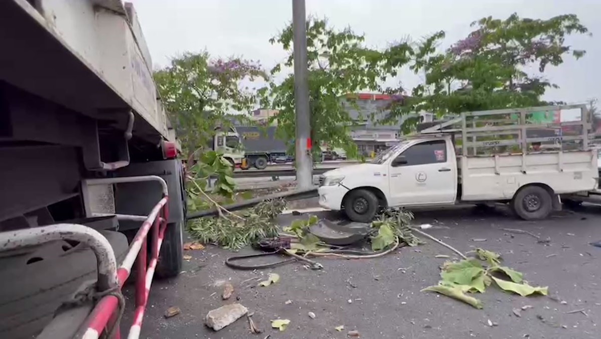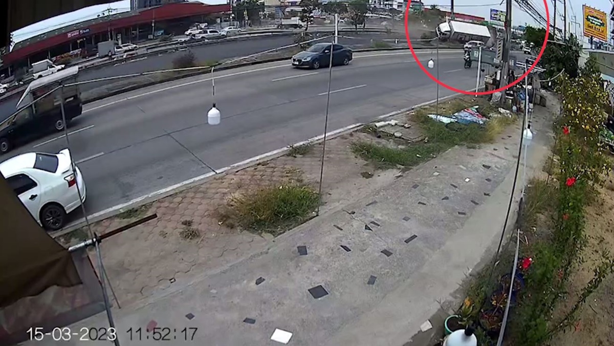 วงจรปิดบันทึกภาพรถบรรทุกพ่วงพุ่งข้ามเกาะกลางถนนมายังฝั่งตรงข้าม โดยเหตุเกิดในช่องทางด่วน ทำให้เหล็กกั้นเกาะกลางเสียหาย อีกทั้งเป็นจังหวะที่มีรถใช้เส้นทางจำนวนมาก เหตุดังกล่าวเกิดขึ้นเมื่อช่วงเที่ยงวานนี้ (15 มี.ค.66) บริเวณปากซอยวัดพระเงิน ถ.กาญจนาภิเษก ต.บางม่วง อ.บางใหญ่ จ.นนทบุรี