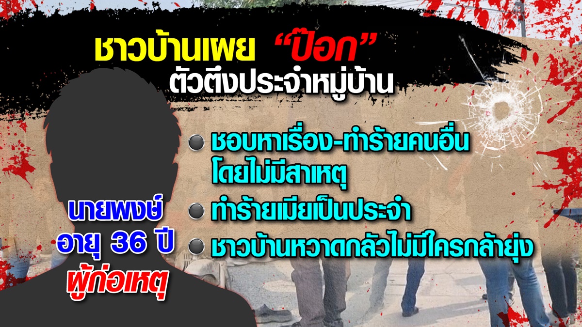 ผู้ก่อเหตุ ชื่อ นายพงษ์ หรือ ป๊อก อายุ 36 ปี ตัวตึงประจำหมู่บ้าน ที่ไม่มีใครกล้าไปยุ่งเกี่ยว เนื่องจากมีพฤติกรรมชอบทำร้ายคนที่เดินผ่าน หรือคนที่ไม่ชอบหน้า นายป๊อกจะเข้าไปทำร้ายโดยไม่ทราบสาเหตุ ก่อนจะมาก่อเหตุยิงนายสมศักดิ์ นายป๊อกมีเรื่องกับคนงานในสวนทุเรียน โดยนายป๊อกยืนขวางและเข้าไปชกต่อยจนได้รับบาดเจ็บ ทั้งที่ไม่ได้มีเรื่องอะไรกัน จนทำให้ชาวบ้านหวาดกลัว เคยแจ้งตำรวจและผู้ใหญ่บ้าน แต่ก็ยังไม่หยุดพฤติกรรมดังกล่าว