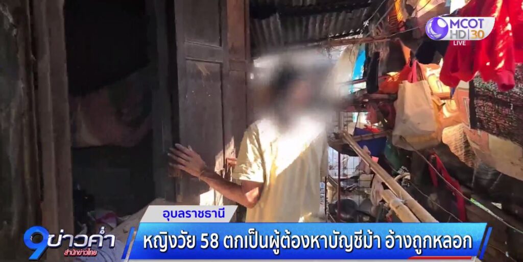 อุบลราชธานี 17 มี.ค. – หญิงวัย 58 ปี อาชีพเก็บของเก่าขาย ถูกหมายเรียกเป็นผู้ต้องหาคดีบัญชีม้า อ้างถูกเพื่อนบ้านหลอก วอนผู้รู้กฎหมายช่วย ขณะเพื่อนบ้านโต้ลูกสาวป้าบอกให้พาไปเปิดเอง และไม่ได้ทำครั้งแรก