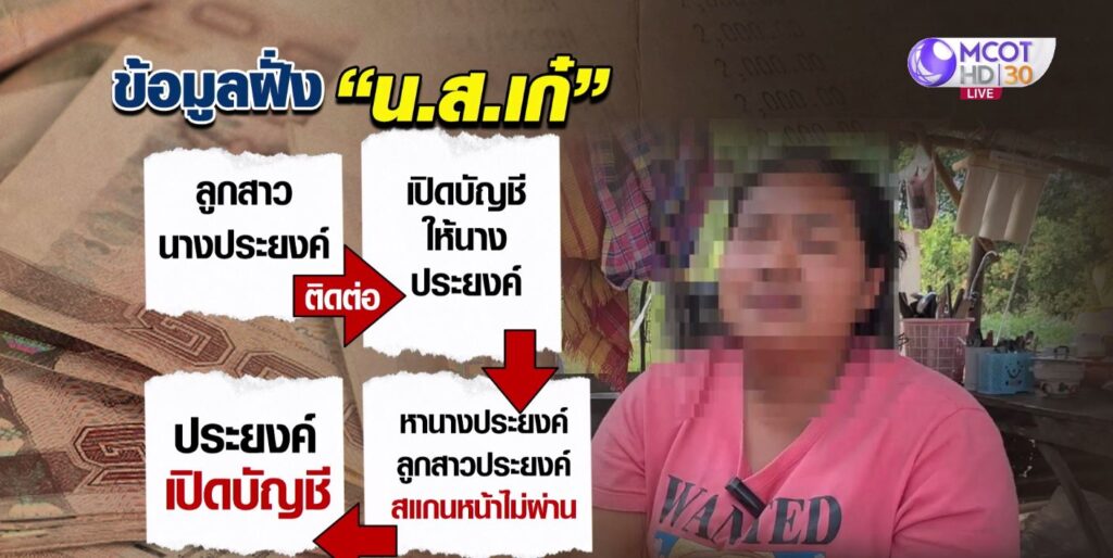 นางประยงค์ เปิดเผยว่า ตนเองมีอาชีพเก็บของเก่าขาย ฐานะยากจน เมื่อเดือนมกราคมที่ผ่านมา มีนางสาวเก๋ เพื่อนบ้าน เข้ามาถามว่า อยากได้เงิน 400 บาท ไหม ตนเองด้วยความที่ไม่มีเงิน จึงตอบว่าอยากได้ นางสาวเก๋ จึงนำข้อมูลส่วนตัวของตนกรอกลงไปในโทรศัพท์มือถือ เพื่อเปิดบัญชี แล้วก็พาไปที่ร้านสะดวกซื้อเพื่อสแกนหน้า เสร็จก็เอาเงินให้ตน 400 บาท เงินที่ได้มาตนก็ไปซื้อข้าวสารและอาหารมาให้หลาน 7 คน