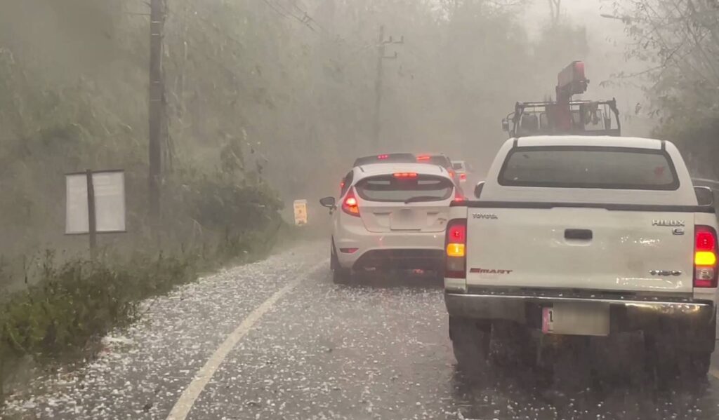 เชียงใหม่ 19 มี.ค.-พายุลูกเห็บระลอกสอง ถล่มแม่วาง จ.เชียงใหม่ นักท่องเที่ยวขับรถฝ่าระทึก