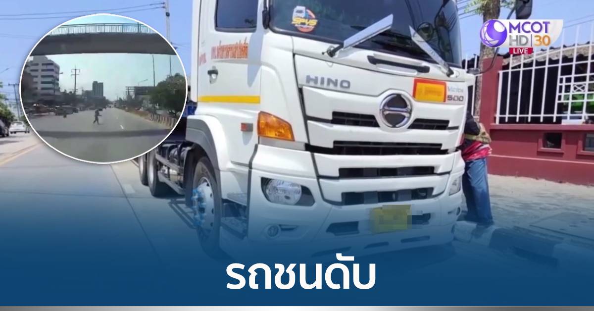 ภาพจากกล้องวงจรปิดหน้ารถบรรทุกพ่วง 22 ล้อ คันเกิดเหตุ เห็นภาพขณะขับมาตามถนนสุขุมวิท ช่องทางที่ 3 ฝั่งขาเข้าพัทยา ขณะขับมาถึงใต้สะพานลอยข้ามถนน หน้าตลาดสี่มุมเมือง ซึ่งเป็นถนนสี่เลน มีชายถือของเดินข้ามถนนมาในช่องทางที่สอง และมาถึงช่องทางที่สาม เข้ามาในเลนของรถบรรทุกพ่วง ทำให้ชนเข้าอย่างแรง จนทำให้มีผู้เสียชีวิต