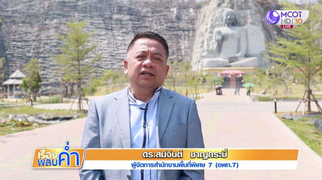 ดร.สมจินต์ ชาญกระบี่ ผู้จัดการองค์การบริหารการพัฒนาพื้นที่พิเศษเพื่อการท่องเที่ยวอย่างยั่งยืน บอกว่า ตอนนี้สกายวอล์กยังไม่เสร็จ แต่เชิญชวนนักท่องเที่ยวมาเที่ยวสักการะพระพุทธปุษยคีรีศรีสุวรรณภูมิ เป็นพระแกะสลักองค์ใหญ่ที่สุดในประเทศไทย