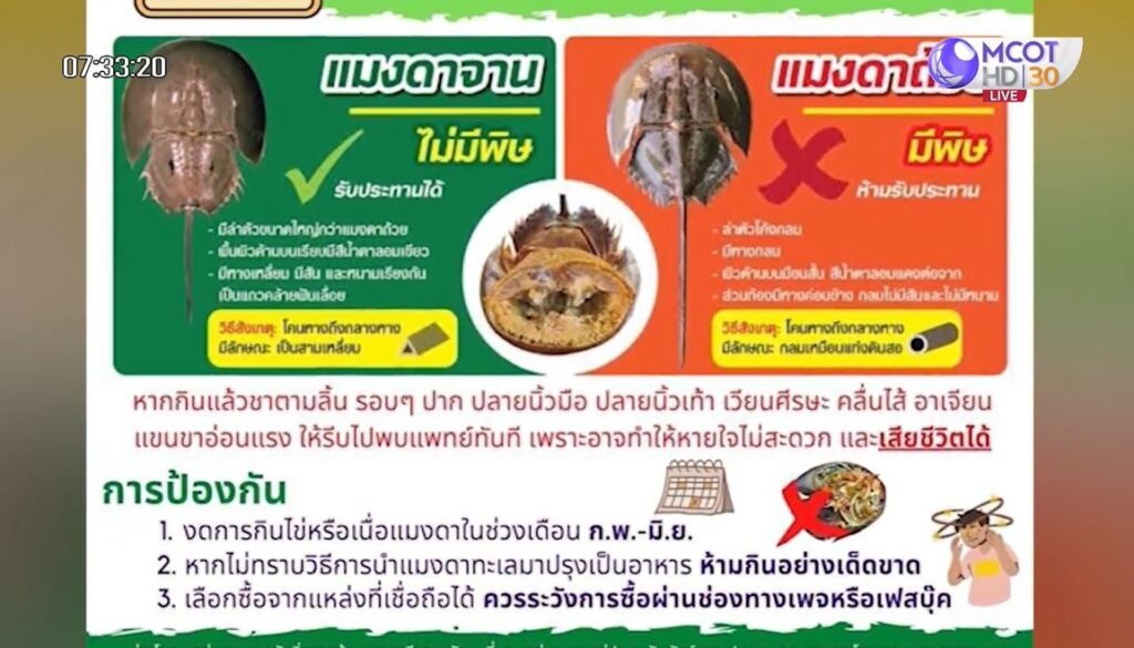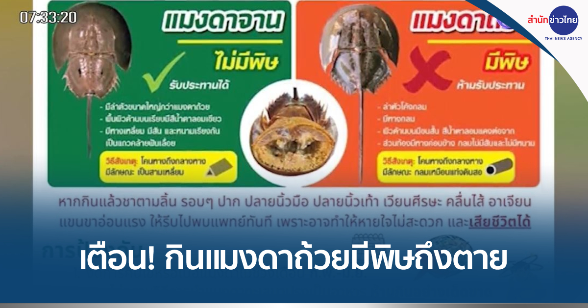 ตราด 21 มี.ค. – สลด! ชาวบ้าน ต.บางปิด อ.แหลมงอบ จ.ตราด กินยำแมงดาถ้วยแกล้มเหล้า เจอพิษเสียชีวิต 2 ศพ สาธารณสุขเตือน “แมงดาถ้วย” ไม่นิยมนำมาปรุงเป็นอาหาร เพราะมีพิษ หากทำความสะอาดไม่ดีจะเกิดพิษต่อร่างกาย