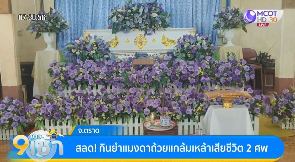 เมื่อวานี้ (20 มี.ค.) ผู้สื่อข่าวเดินทางไปยังวัดบางกระดาน ต.บางปิด อ.แหลมงอบ จ.ตราด ซึ่งเป็นสถานที่ตั้งศพของผู้เสียชีวิต 2 คน จากการกินไข่แมงดาถ้วย รายแรกคือ นางสาวเปรมวดี อายุ 62 ปี และนายธัญญา อายุ 57 ปี