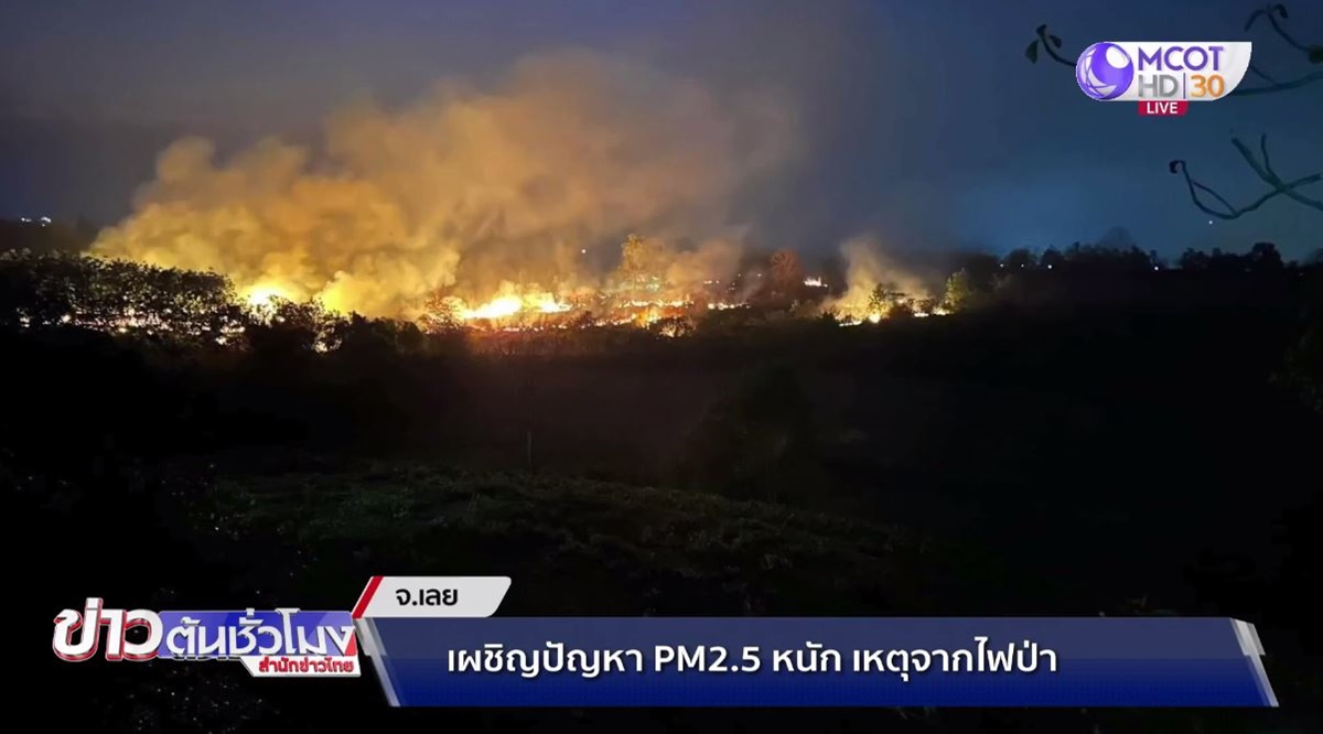 เลย 26 มี.ค. – จ.เลย เผชิญปัญหา PM 2.5 อย่างหนัก หลังไฟป่าลุกลามหลายพื้นที่ ทำให้เกิดหมอกควันปกคลุม ตรวจวัดค่า PM 2.5 ในเขตเทศบาลเมืองเลย พุ่ง 85 มคก./ลบ.ม.