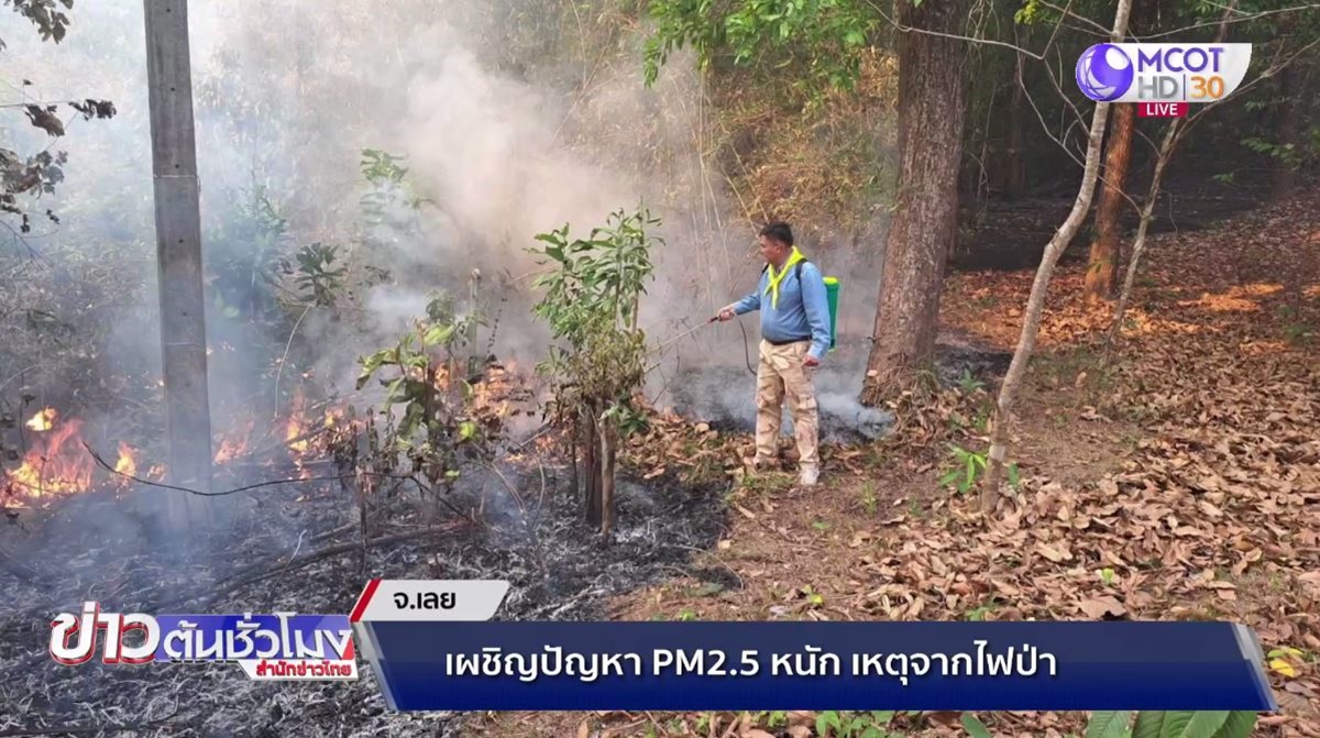 สภาพอากาศที่ร้อนระอุหลายพื้นที่ใน จ.เลย ประกอบกับในพื้นที่ อ.นาแห้ว เกิดไฟป่าลุกลามไปตามภูเขา กินบริเวณไปหลายพื้นที่ ยากแก่การเข้าดับ ทำให้เกิดหมอกควันปกคลุมอย่างเห็นได้ชัด ซึ่งลักษณะเช่นนี้เป็นมารวม 5 วันแล้ว โดยเครื่องตรวจวัดคุณภาพอากาศ หรือ PM 2.5 ในเขตเทศบาลเมืองเลย 85 ไมโครกรัม/ลูกบาศก์เมตร