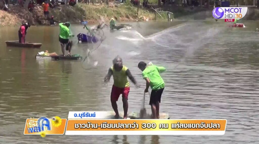 บุรีรัมย์ 27 มี.ค. – ชาวบ้าน-เซียนปลาทั่วสารทิศกว่า 300 คน ร่วมลงแขกจับปลาสระน้ำบ้านพรหมนิมิตร จ.บุรีรัมย์ รายได้นำไปพัฒนาหมู่บ้าน แต่ที่สร้างความฮือฮา คือ เซียนปลาจาก อ.ลำปลายมาศ เหวี่ยงแหได้ปลาดุกเผือกยักษ์หนัก 4 กก. เจ้าตัวบอกตามหามา 20 ปี เพิ่งเจอครั้งนี้ครั้งแรก
