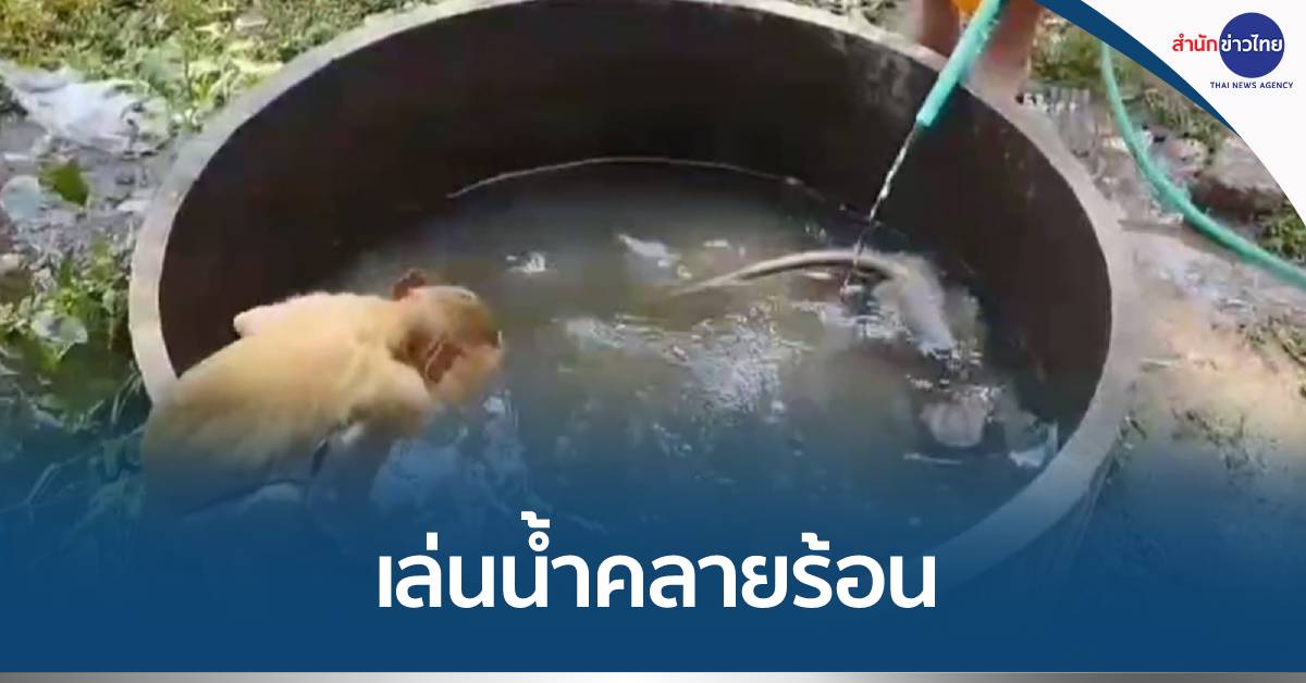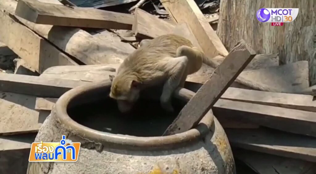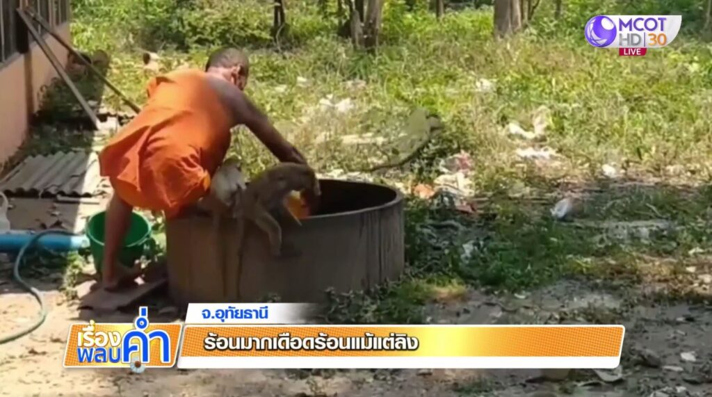 สภาพอากาศที่ร้อนจัด ส่งผลให้ฝูงลิงป่าบนเทือกเขาปฐวี ที่อยู่ติดกับวัดเขาปฐวี ต.ตลุกดู่ อ.ทัพทัน จ.อุทัยธานี มีลิงป่าจำนวนมากพากันหาแหล่งน้ำลงแช่น้ำคลายร้อน