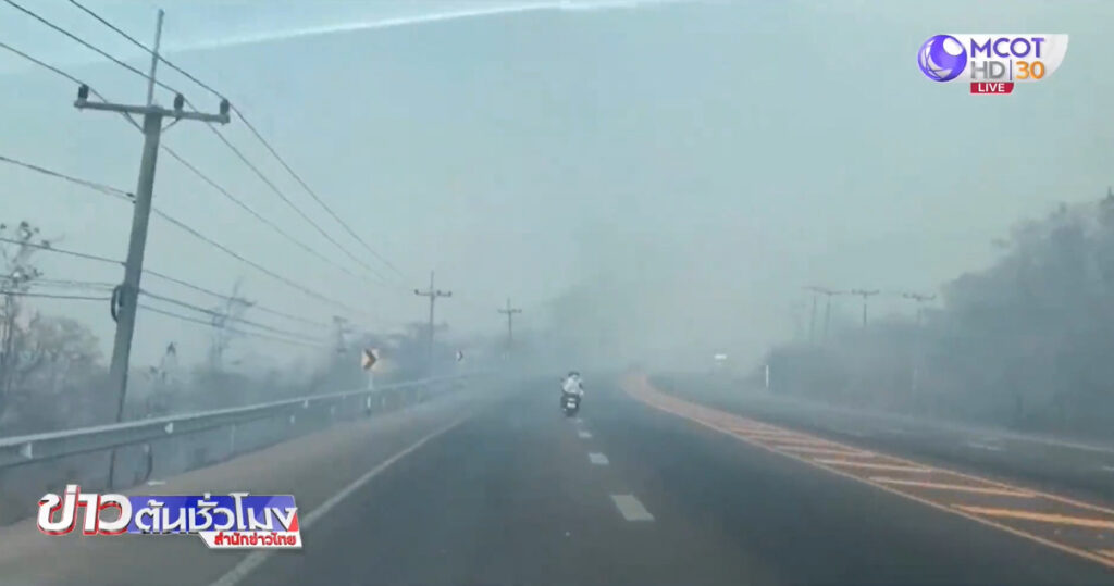 ขณะที่สถานการณ์ไฟป่าในจังหวัดเลย ยังพบในหลายพื้นที่ เจ้าหน้าที่และชาวบ้านช่วยกันใช้ทั้งรถน้ำ เครื่องเป่าลม ไม้ตบไฟ ดับไฟตลอด 24 ชั่วโมง ส่วนอำเภอนาแห้ว ไฟยังลุกลามไปทั้งอำเภอ และยอดภูจุดชมวิวภูค้อน้อย บ้านบุ่ง และอีกหลายพื้นที่ของอำเภอภูเรือ อำเภอด่านซ้าย ซึ่งผลตรวจวัดคุณภาพอากาศในพื้นที่ ตำบลกุดป่อง อำเภอเมือง จังหวัดเลย เมื่อเช้าพบค่าฝุ่น PM 2.5 สูงถึง 132 ไมโครกรัมต่อลูกบาศก์เมตร อยู่ในเกณฑ์กระทบต่อสุขภาพ.-สำนักข่าวไทย