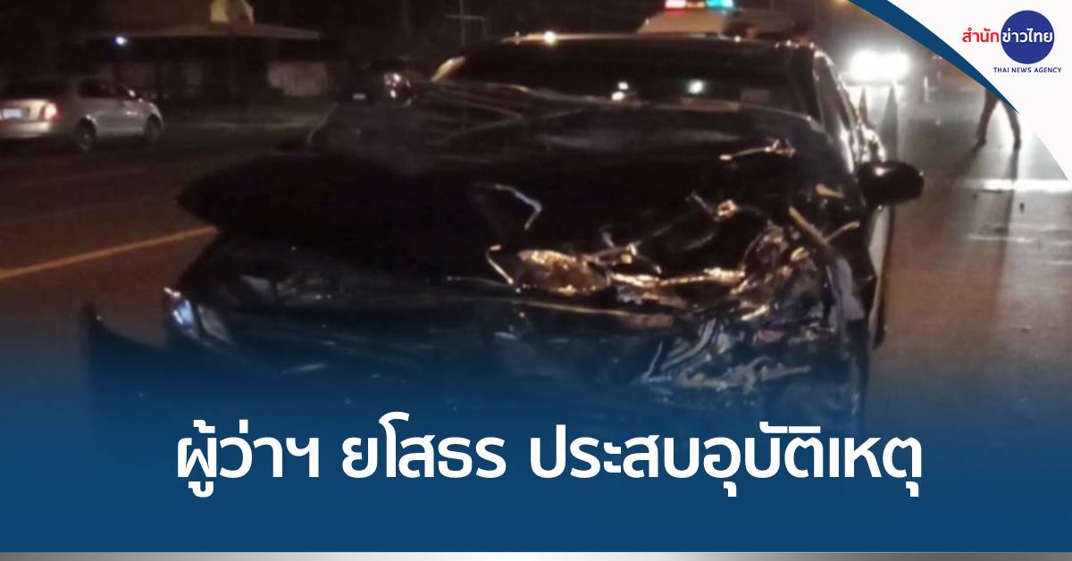 ยโสธร 28 มี.ค. – ผู้ว่ฯ ยโสธรขับรถยนต์ประสบอุบัติเหตุบริเวณปากทางเข้าบ้านหนองหาบแห่ ถนนแจ้งสนิท ต.ลุมพุก อ.คำเขื่อนแก้ว จ.ยโสธร สภาพรถพังยับ บาดเจ็บเล็กน้อย