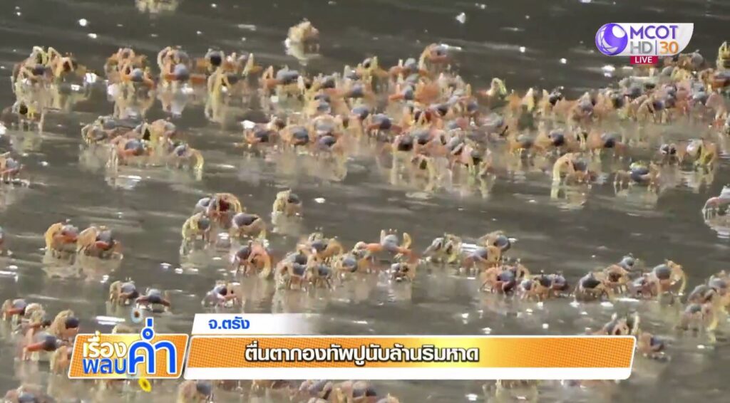 ตรัง 28 มี.ค. – กองทัพปูทหารนับล้านตัวโผล่หากินชายหาดหยงหลิง อ.กันตัง จ.ตรัง สร้างความตื่นตาตื่นใจให้กับนักท่องเที่ยวเป็นอย่างมาก ซึ่งจะเห็นได้ทุกวันหลังน้ำลด