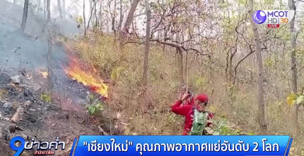 จ.เชียงใหม่ ยังเกิดไฟป่าอย่างต่อเนื่อง วันนี้มีมากถึง 223 จุด โดยเฉพาะพื้นที่ อ.เชียงดาว แชมป์การเผามากถึง 61 จุด ส่วนใหญ่เกิดในพื้นที่ป่าอนุรักษ์ รองลงมา อ.แม่อาย 34 จุด อ.แม่แตง 19 จุด อ.ไชยปราการ 18 จุด อ.สะเมิง 17 จุด และกระจายเกือบทุกอำเภอ ยกเว้นพื้นที่ อ.เมือง แต่หมอกควันลอยเข้ามาในพื้นที่แอ่งกระทะในตัวเมืองเชียงใหม่ ทำให้คุณภาพอากาศพื้นที่ ต.ช้างเผือก และ ต.ศรีภูมิ ค่า PM 2.5 อยู่ระหว่าง 100-115 ไมโครกรัมต่อลูกบาศก์เมตร ทุกพื้นที่ป่าที่เกิดไฟไหม้ จิตอาสาทุกหมู่บ้านยังคงเร่งดับไฟไม่หยุด