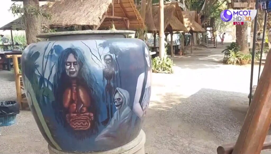 เพชรบูรณ์ 29 มี.ค. – วัดเสาธงทอง อ.เมือง จ.เพชรบูรณ์ เปิดตลาดนัด “ป่าช้าคาเฟ่” บรรยากาศวิเวกวังเวง พร้อมเมนูชื่อแปลก หลอนได้ใจ แฝงกลิ่นอายป่าช้า ตื่นเต้นชวนขนหัวลุก