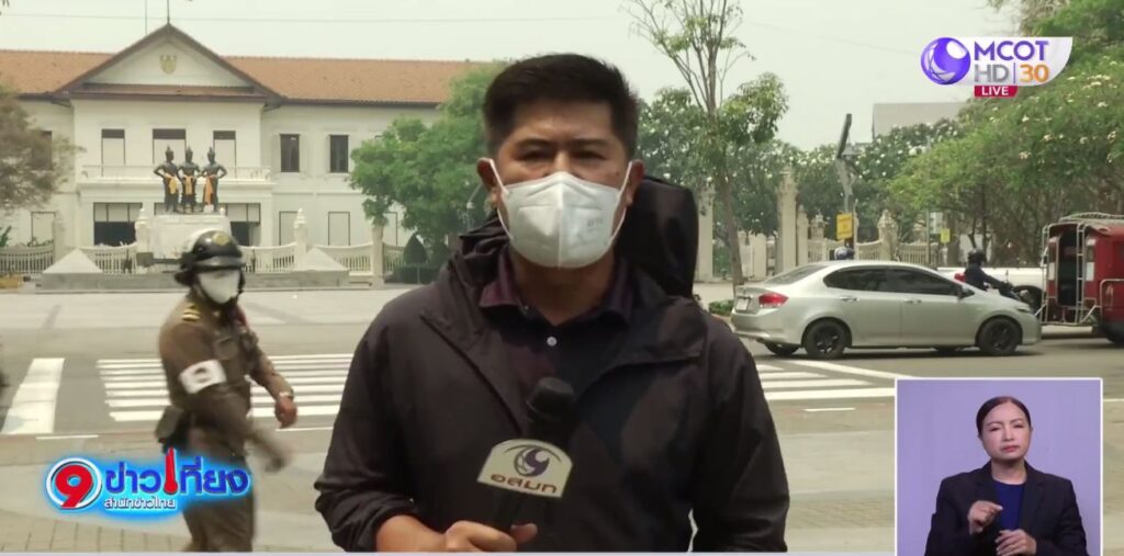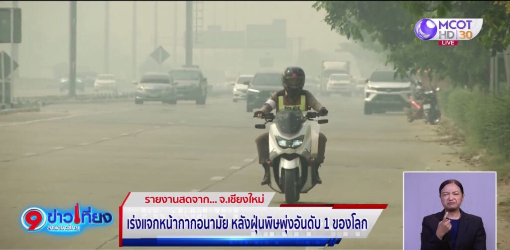 เชียงใหม่ 30 มี.ค. – ทั้งจังหวัดเชียงใหม่เต็มไปด้วยหมอกควันฝุ่นพิษปกคลุมหนาแน่น หายใจไม่เต็มปอด ได้กลิ่นควันไฟจากการเผาชัดเจน ค่าฝุ่นพิษ PM2.5 พุ่งต่อเนื่อง อ.เชียงดาว เกินมาตรฐาน 18 เท่า 912 ไมโครกรัม/ลูกบาศก์เมตร ทางจังหวัดเร่งแจกหน้ากาก N95 ให้ประชาชน