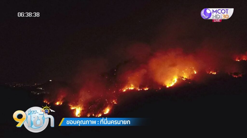 สถานการณ์ไฟป่าในพื้นที่จังหวัดนครนายกยังไม่สงบ ล่าสุดเมื่อเวลา 23.28 น. (30 มี.ค.) ผู้สื่อข่าวได้รับแจ้งว่าไฟป่าได้โหมแรงขึ้น หลังจากเริ่มมีกระแสลมพัดเข้ามาในพื้นที่เขานางดำ ตำบลเขาพระ ตั้งแต่ช่วงหัวค่ำ