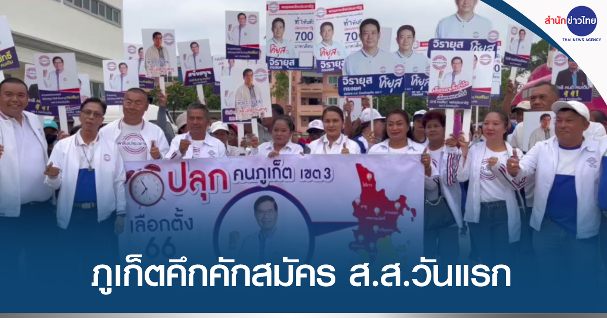 ภูเก็ต 3 เม.ย. – การรับสมัครเลือกตั้ง ส.ส. วันแรก ที่ จ.ภูเก็ต คึกคัก ผู้สมัครจากพรรคต่างๆ เดินทางมาถึงสถานที่รับสมัครก่อนเวลา ขณะที่ผู้ว่าฯ ภูเก็ต เยี่ยมให้กำลังใจเจ้าหน้าที่ผู้ปฏิบัติงาน