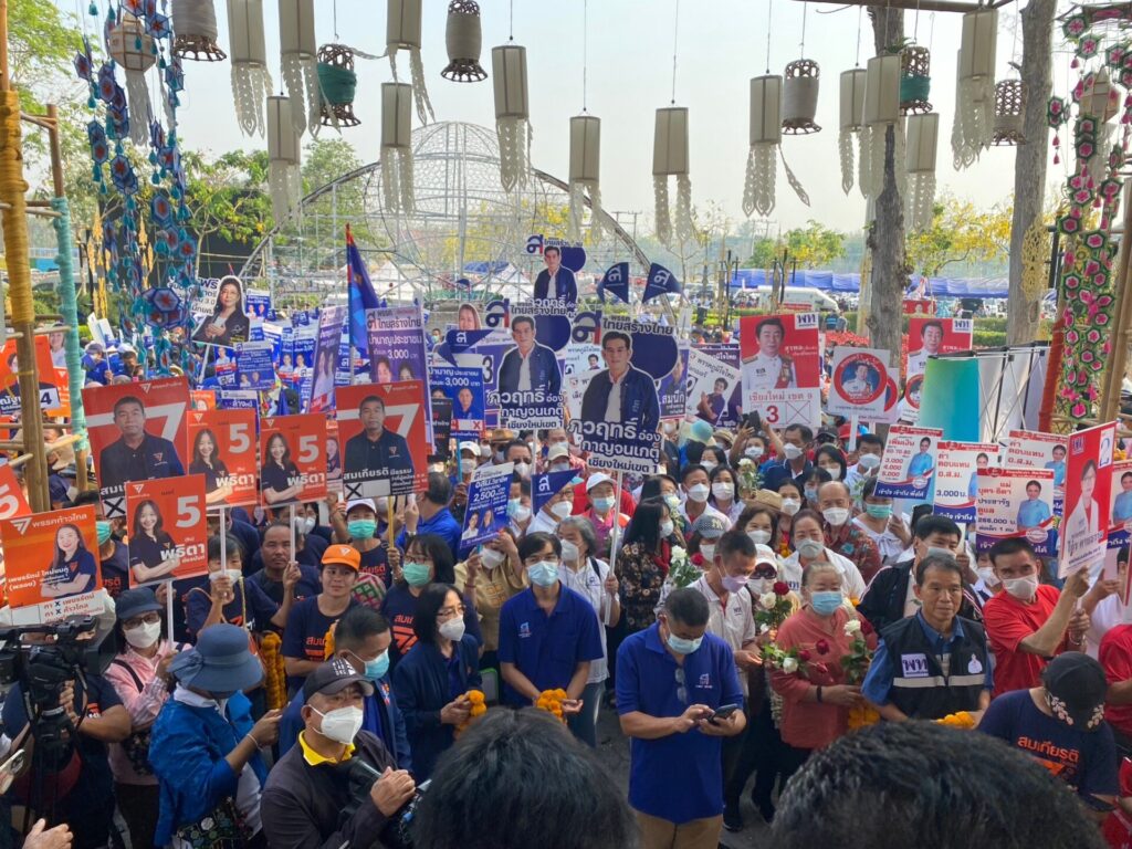 ส่วนเจ้าของพื้นที่เดิมอย่างเพื่อไทย นำโดยนายสมพงษ์ อมรวิวัฒน์ อดีตหัวหน้าพรรคเพื่อไทย ในฐานะที่ปรึกษาคณะกรรมการยุทธศาสตร์และทิศทางการเมือง นำทีมว่าที่ผู้สมัครพรรคเพื่อไทย มาสมัคร ส.ส.แบบแบ่งเขต โดยบอกว่าเขต 1 ต้องทำให้ได้ และมีความมั่นใจที่จะสามารถทำแลนด์สไลด์ได้ในเชียงใหม่ เพราะเป็นเป้าหมายสูงสุด โดยเฉพาะที่จังหวัดเชียงใหม่ที่เป็นฐานที่มั่นสำคัญก็มั่นใจว่าคนจะให้ความไว้วางใจพรรคเพื่อไทย ส่วนเช้านี้ถือฤกษ์ถือชัยไปไหว้ครูบาศรีวิชัย เพื่อความเป็นสิริมงคล ส่วนเบอร์ของผู้สมัครจะเป็นเบอร์ไหนก็ได้ ขอให้เป็นเบอร์ที่ชนะ
