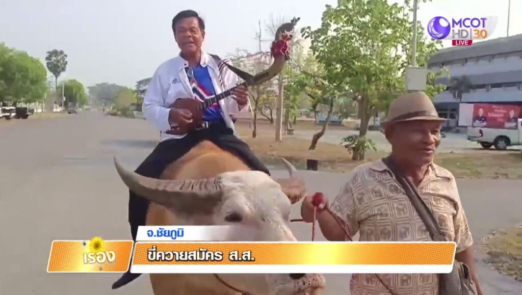 บรรยากาศการรับสมัครรับเลือกตั้ง ส.ส.ชัยภูมิ วันแรก มีผู้สมัคร ส.ส.เขต 2 จังหวัดชัยภูมิ ขี่ควายเพศเมีย ราคาหลายแสนบาท เดินทางเข้ามาในบริเวณรับสมัครจนเป็นที่ฮือฮา โดยนายโสโชค สู้โนนตาด ผู้สมัครเขต 2 พรรครวมไทยสร้างชาติ บอกว่า วันนี้พาเจ้าเผือก ควายคู่ใจ มาจากบ้าน เพื่อมาลงสมัคร ส.ส. ตนเป็นลูกชาวนา ตนเป็นคนที่มีอาชีพเลี้ยงควาย เป็นลูกชาวนา 100% และศึกเลือกตั้งครั้งนี้ก็สู้เต็มร้อย เอาจริง ไม่ใช่มาเล่นๆ หรือแค่หวังสร้างสีสันเท่านั้น