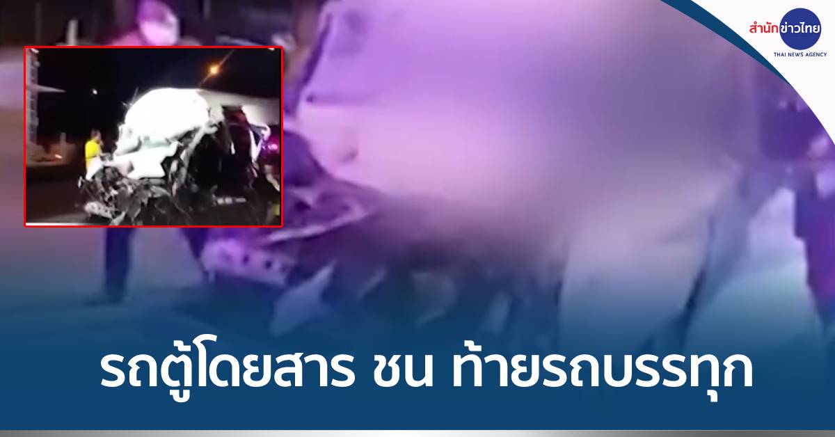 ที่เกิดเหตุพบรถตู้โดยสารสีขาว พุ่งชนประสานงากับท้าย รถบรรทุกตู้คอนเทนเนอร์ สภาพรถตู้โดยสารคอนโซลกดทับคนขับเสียชีวิต ในรถตู้พบเสียชีวิตอีก 3 ราย รวมเสียชีวิต 4 ราย 1 ในผู้เสียชีวิต เป็นหญิงตั้งครรภ์ 4-5 เดือน