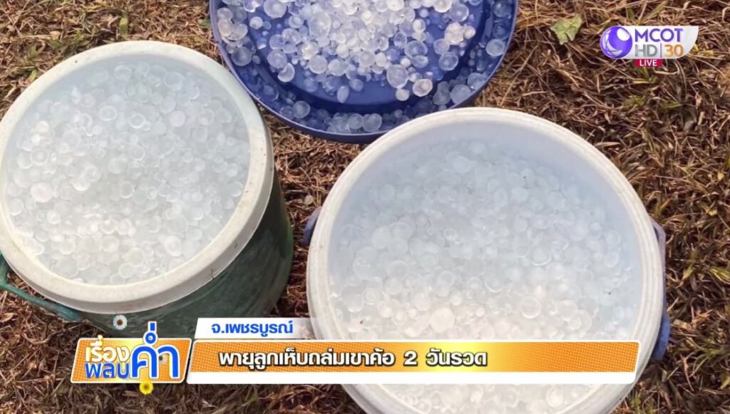 เพชรบูรณ์ 11 เม.ย. – พายุลูกเห็บถล่มเขาค้อ 2 วันซ้อน ขาวโพลนเต็มพื้น แปลงปลูกผักเสียหาย