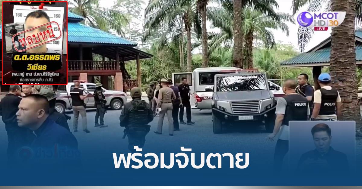 สุราษฎร์ธานี 12 เม.ย. – ตำรวจระดมกำลังเร่งล่า ด.ต.อรรถพร มือยิง 6 ศพ ที่ จ.สุราษฎร์ธานี เป็นวันที่ 5 ผู้การลั่นต้องได้ตัววันนี้ ไม่ว่าจะจับเป็นหรือจับตาย เตือนประชาชนเฝ้าระวัง เพราะเป็นบุคคลอันตราย