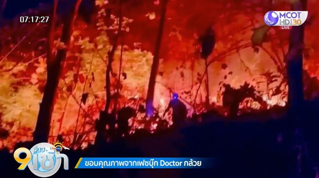 นี่เป็นคลิปที่โพสต์ลงเฟซบุ๊ก “Doctor กล้วย” บอกว่าได้ยินเสียงไฟป่าลั่นหลายครั้ง เปรียบเหมือนกับสนามรบ ไฟป่าดอยจระเข้เกิดขึ้นด้านหลังโรงพยาบาลแม่จัน ที่คุณหมอเจ้าของโพสต์ทำงานอยู่ พร้อมเรียกร้องให้ตั้งข้อหาหนักและดำเนินคดีคนเผาป่า.-สำนักข่าวไทย