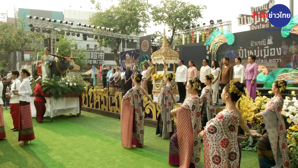 เชียงใหม่ 13 เม.ย.- ประเพณีปี๋ใหม่เมืองหรือสงกรานต์ที่เชียงใหม่เริ่มต้นขึ้นอย่างเป็นทางการแล้ว เต็มไปด้วยสีสันทางวัฒนธรรมที่งดงาม