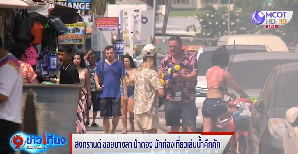 นักท่องเที่ยวที่ออกมาเล่นสาดน้ำสงกรานต์ที่ป่าตอง ส่วนใหญ่เป็นชาวต่างชาติ บอกว่าตั้งใจมาเที่ยวภูเก็ตในช่วงนี้ส่วนหนึ่งเพราะต้องการมาเล่นสาดน้ำสงกรานต์ด้วย เนื่องจากได้ยินชื่อเสียงของเทศกาลสงกรานต์ไทยมานาน เมื่อได้มาสัมผัสจริงรู้สึกว่าเป็นเทศกาลที่สนุกสนานและน่าประทับใจเป็นอย่างมาก