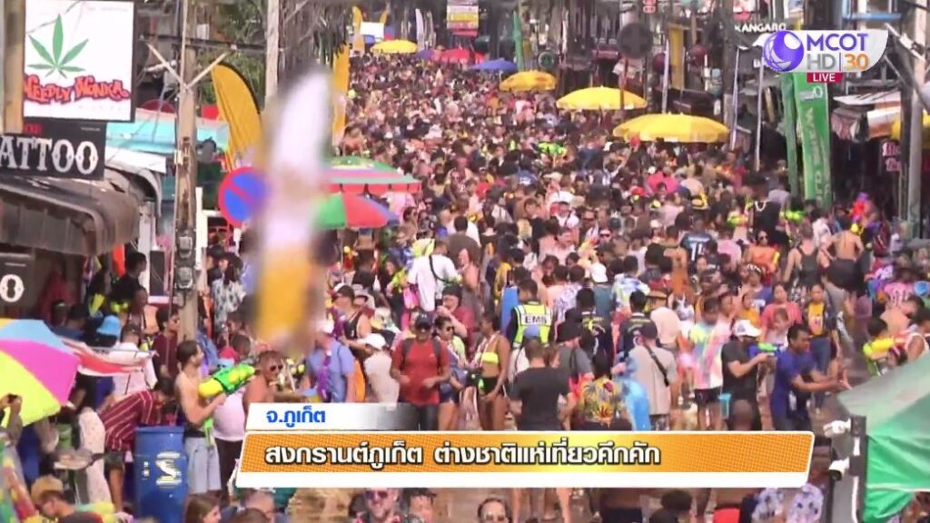ภูเก็ต 13 เม.ย. – นักท่องเที่ยวต่างชาติแห่เล่นน้ำสงกรานต์หาดป่าตอง ภูเก็ต ยิ่งเย็นยิ่งคึกคัก ชุ่มฉ่ำทั่วหาด ส่วนที่ซอยบางลา ปิดถนนเล่นสงกรานต์จุใจ . – สำนักข่าวไทย