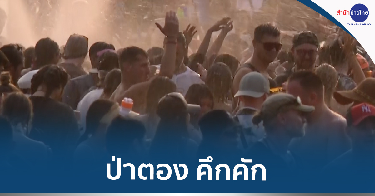 ภูเก็ต 13 เม.ย.-ยิ่งค่ำบรรยากาศที่หาดป่าตองภูเก็ตก็ยิ่งคึกคัก นักท่องเที่ยวออกมาเล่นสาดน้ำสงกรานต์กันอย่างสนุกสนาน.-สำนักข่าวไทย