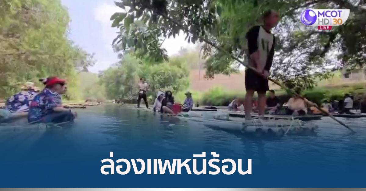 ตาก 14 เม.ย. – ตากร้อนจัด 42 องศาฯ นักท่องเที่ยวพาครอบครัวหนีร้อนไปล่องแพไม้ไผ่แก่งเสือเต้น แห่แช่น้ำลำห้วยแม่ละเมา
