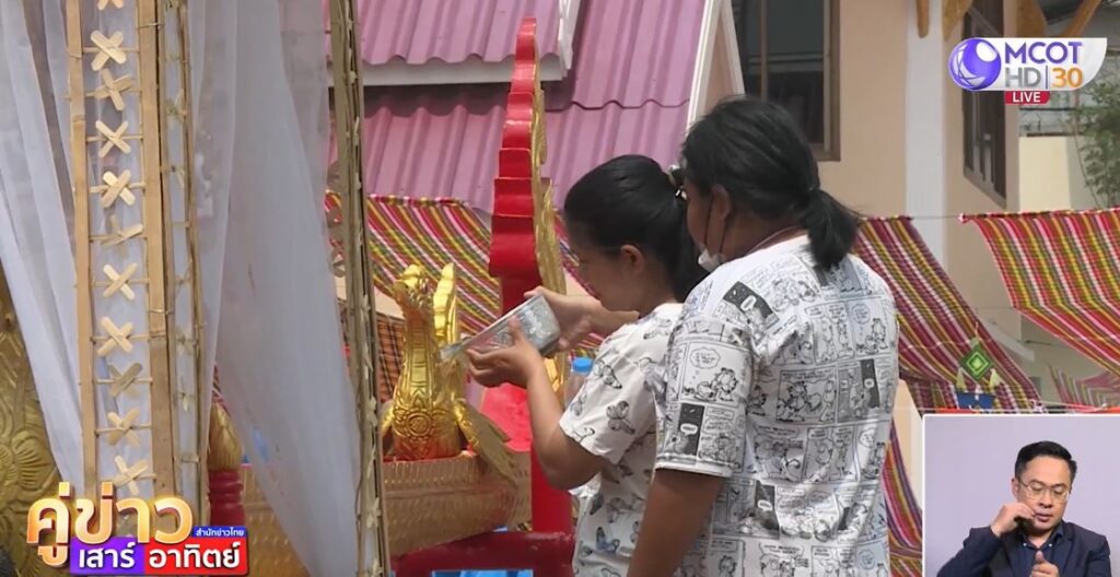 กิจกรรมนี้จึงมีทั้งการสวดมาติกาบังสุกุล บายศรีสู่ขวัญ ตลอดจนผูกข้อต่อแขนผู้ร่วมพิธี ขณะที่ร้านอาหารเช้า ร้านขายของฝากหลายแห่งในตัวเมืองขอนแก่น คึกคักตลอดช่วงสงกรานต์ มีลูกค้าเข้าร้านเกินเท่าตัวจากช่วงเวลาปกติ เช่น ร้านบ้านเฮง ซึ่งมิชลิน ไกด์ แนะนำเป็นหนึ่งในอาหารขึ้นชื่อ เป็นหมุดหมายให้นักท่องเที่ยวต้องไปลิ้มลอง ของฝากยอดนิยม เช่น กุนเชียง หมูหยอง หมูยอ ตุ๊บตั๊บ แหนมเนือง ไส้กรอกอีสาน ส่วนอาหารสด ข้าวอบกุนเชียง ที่เป็นเอกลักษณ์ สูตรลับเฉพาะของทางร้าน มาเป็นอันดับ 1 อย่างชาวเชียงใหม่คู่นี้มาซื้อของฝากเพื่อเตรียมเดินทางกลับบ้านพรุ่งนี้ และคืนนี้จะพาลูกวัยรุ่น 2 คน ไปเล่นน้ำสงกรานต์ทิ้งทวนที่ถนนข้าวเหนียวด้วย