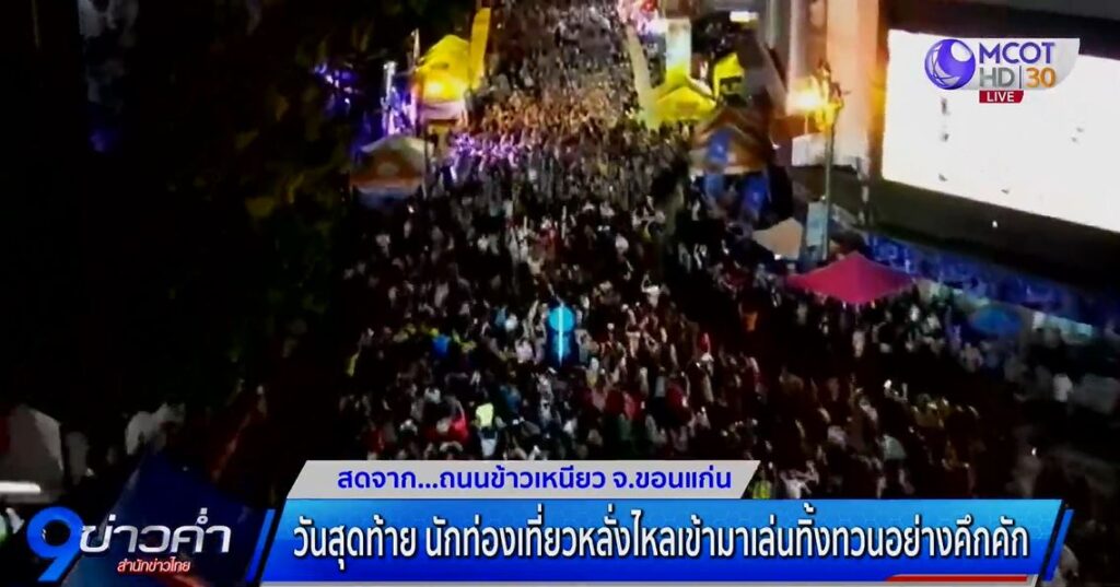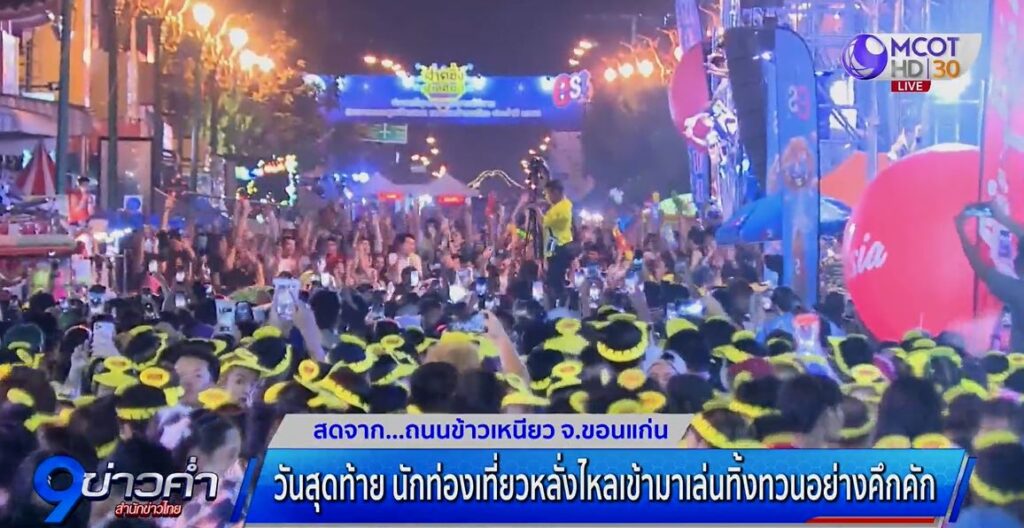 ขอนแก่น 15 เม.ย. – สงกรานต์ถนนข้าวเหนียว จ.ขอนแก่น วันสุดท้าย นักท่องเที่ยวหลั่งไหลเข้ามาเล่นน้ำทิ้งทวนคึกคัก ลุ้นคลื่นมนุษย์ไร้แอลกอฮอล์ทำลายสถิติโลก
