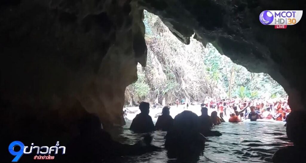 นักท่องเที่ยวหนีสาดน้ำแห่ลงทะเล เที่ยวถ้ำมรกต สุดคึกคัก