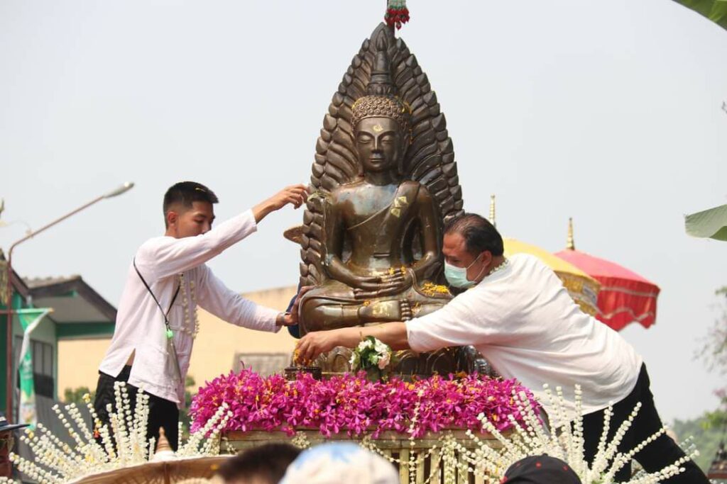 ลำพูน 15 เม.ย. – จังหวัดลำพูนจัดงานสืบสานประเพณีสงกรานต์ ปี๋ใหม่เมืองหละปูนประจำปี 2566 อัญเชิญพระพุทธรูปสำคัญในจังหวัด เพื่อให้ประชาชนและนักท่องเที่ยวได้สรงน้ำเพื่อความเป็นสิริมงคล