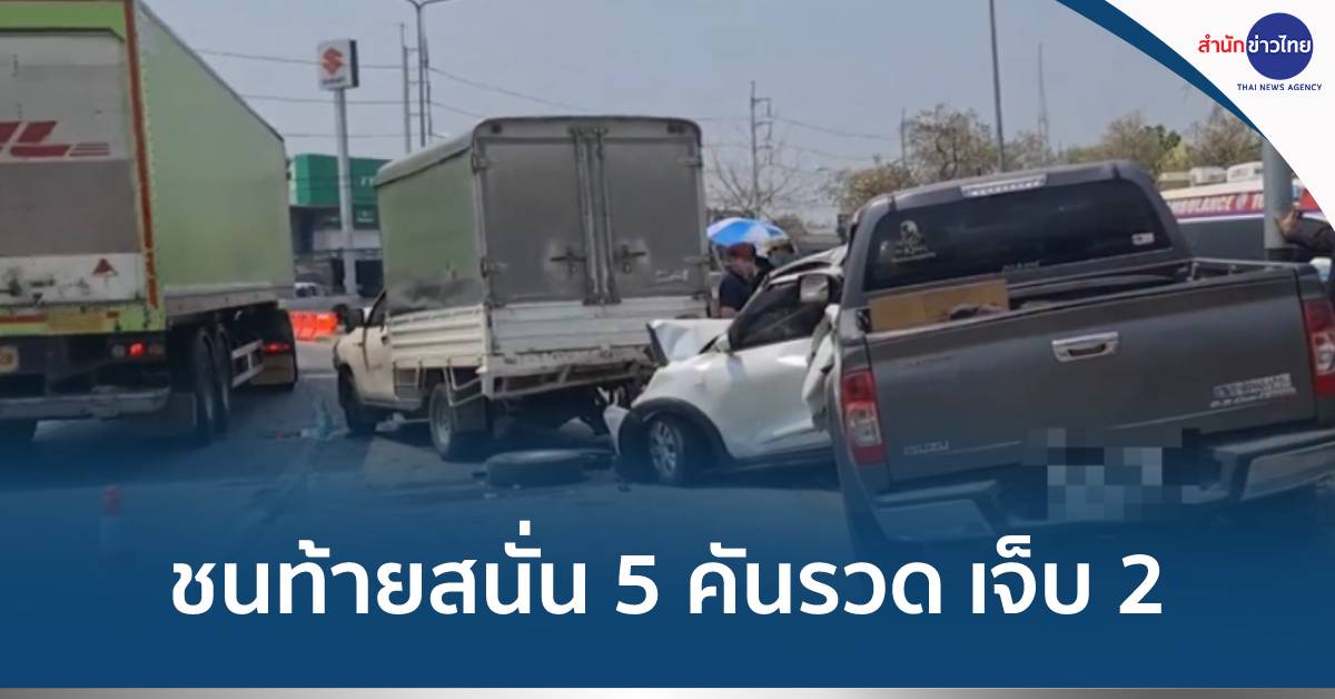 สาเหตุเบื้องต้นคาดว่า ช่วงติดไฟแดง รถกระบะขับมาเกิดเบรกไม่อยู่ พุ่งชนท้ายรถเก๋งคันที่3 ส่งผลให้เกิดการชนท้ายต่อๆกัน เจ้าหน้าที่นำตัวผู้บาดเจ็บส่งโรงพยาบาลแล้ว.-สำนักข่าวไทย